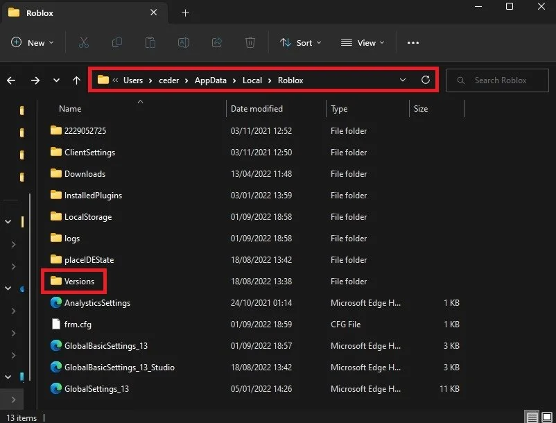 Your file explorer will open up. From here, navigate to AppData > Local > Roblox. Proceed to navigate to the most recent version folder.
