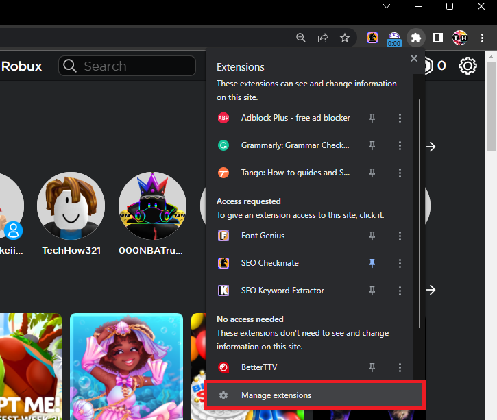 Browser extensions can occasionally interfere with Roblox's proper functioning. Here's how to manage extensions on Google Chrome: