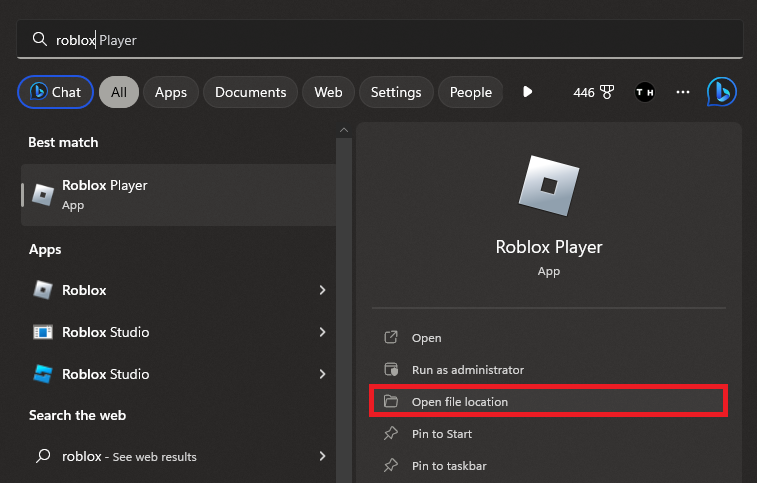 Find Roblox Player App: Use your start menu search to locate “Roblox,” then right-click the Roblox Player shortcut and select “Open File Location.”