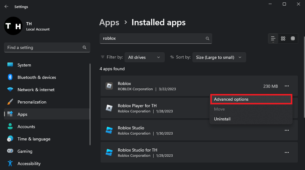 For Windows users, start by opening the Windows settings. Within the "Apps" section, navigate to "Installed Apps" and search for Roblox. Once located, click on "Advanced Options" for Roblox, and then select "Reset."
