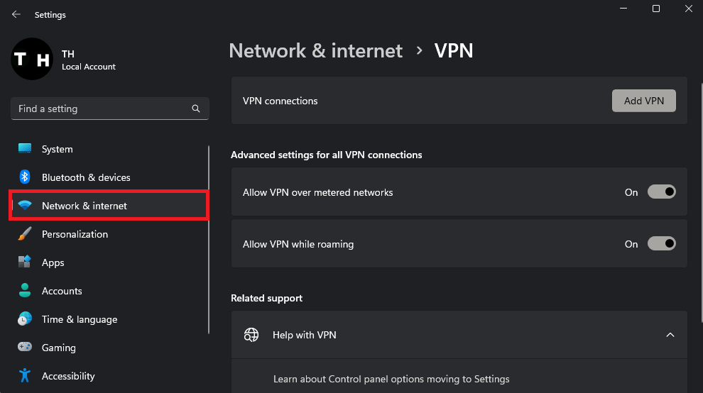 Windows Settings > Network & Internet > VPN