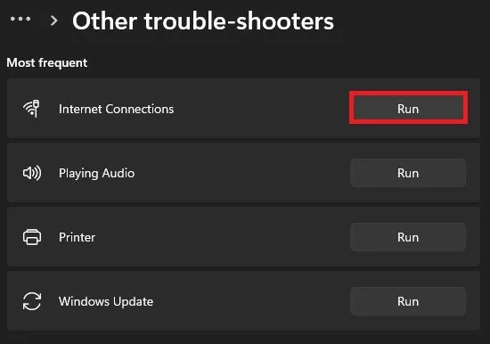 Run Internet Connections Troubleshooter