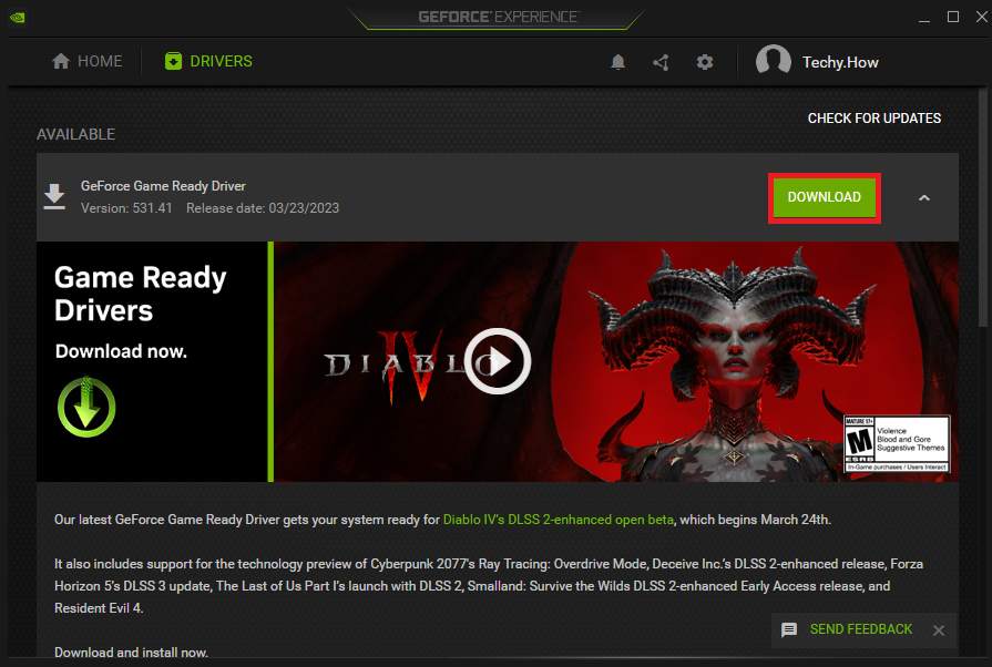 Navigate to the Drivers section and download the most recent driver. GeForce Experience will automatically install the driver, usually taking just a few minutes. By maintaining an up-to-date driver, you'll ensure optimal Frontlines performance and an enhanced gaming experience.