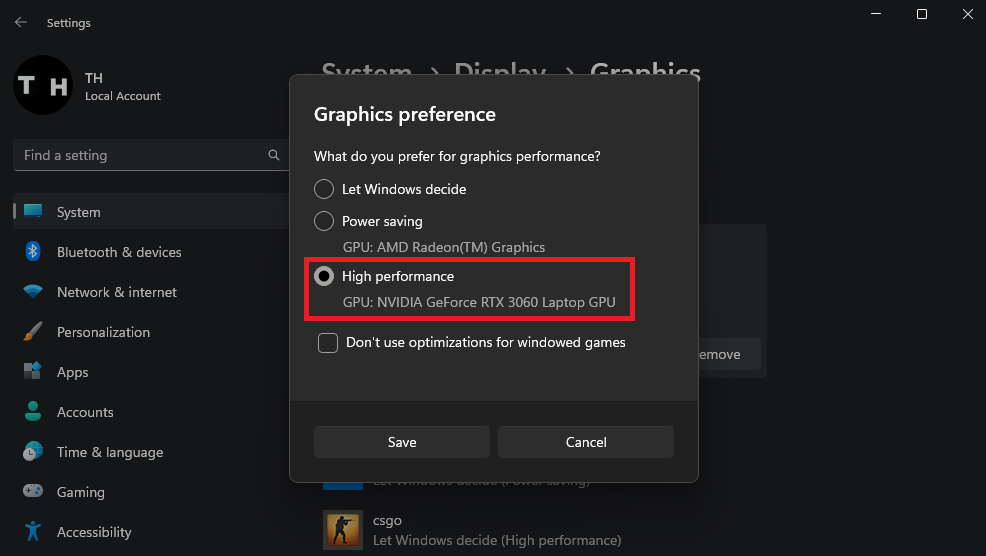 Next, click on Options for the game and set your graphics preference to High Performance. This will ensure that your graphics card gets utilized as soon as you launch the game.