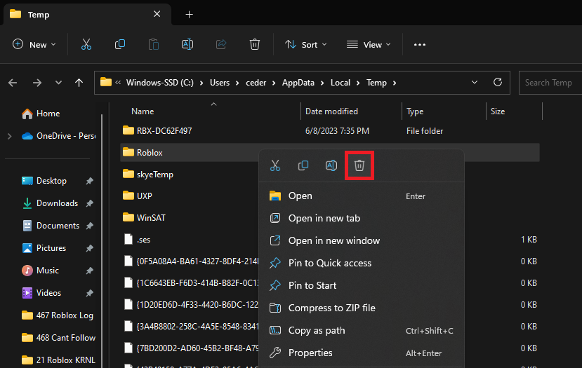 Clearing Roblox Temporary Files