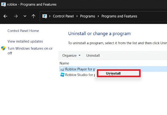 Click on Roblox-related applications like Roblox Player or Roblox Studio and choose to uninstall them.