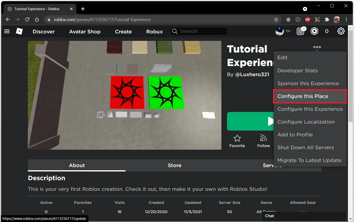 To fix this Roblox error, the creator of the Roblox experiment needs to adjusts the server settings. To do so, the player running the server needs to navigate to the game page on their browser. Scroll down and click on the burger menu. Select Configure This Place.