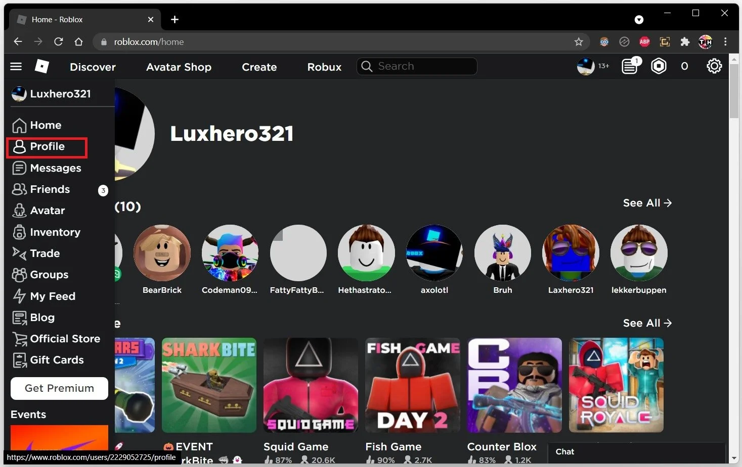 To ensure they are inviting the correct username, log in to your Roblox account and navigate to your profile by clicking on your username on the top right or click on the menu icon on the left-hand side and select Profile.