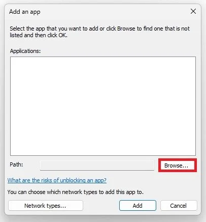 If you cannot find it, click on Allow another app. Next, click on Browse, and your file explorer will open up.