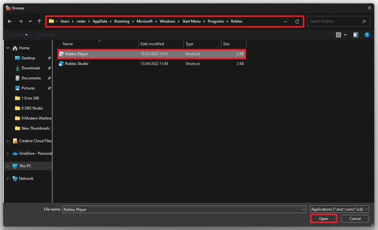 The file path for the Roblox application is the drive on which you saved the game, most commonly your C: drive, Users > your username > AppData > Roaming > Microsoft > Windows > Start Menu > Programs > Roblox and here select the Roblox Player application. This will add Roblox to the Allowed Applications list for your Windows Firewall. Make sure that the application is checked and you can then close this window.