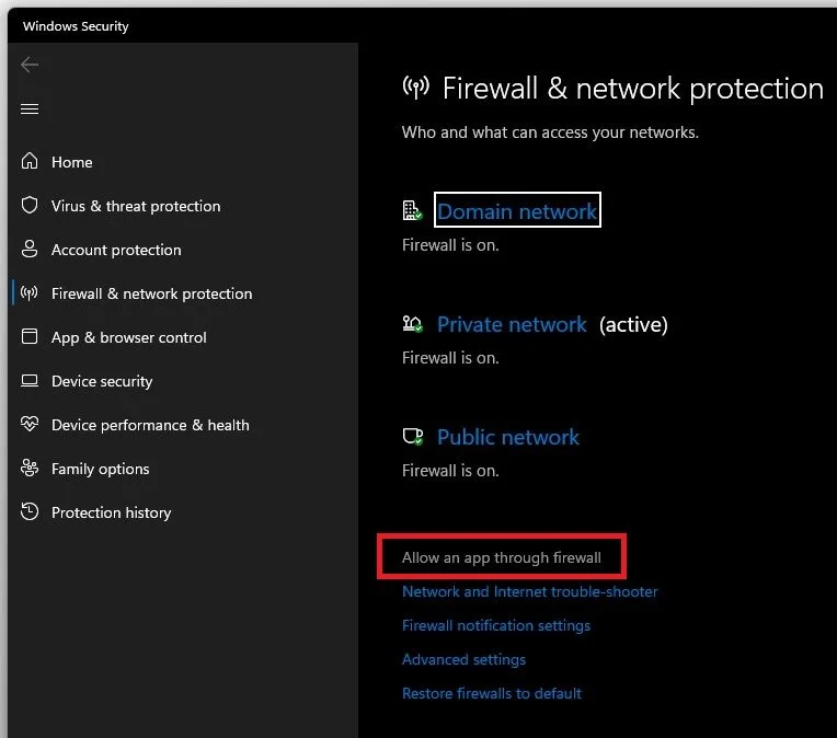 To further troubleshoot this problem, make sure that your Windows Firewall is not blocking parts of the Roblox player application. Search for Firewall to open your Firewall & Network Protection system settings window.