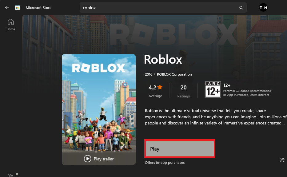 Open the Microsoft Store app and search for Roblox. Click on the Roblox application and launch it directly from the store. This action ensures your game files are up-to-date and helps in fixing the Roblox marketplace not loading problem.
