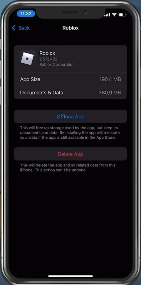 iPhone Settings > General > iPhone Storage > Roblox