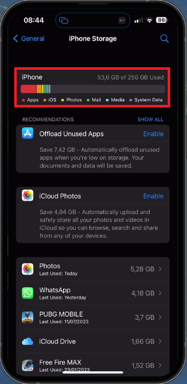 iPhone Settings > General > iPhone Storage