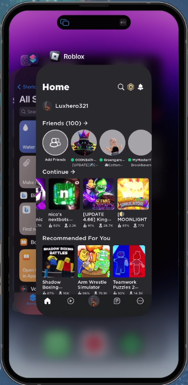 Start by ensuring that no unnecessary applications are draining your mobile device's resources. For this, you need to close the Roblox app along with all other applications that are currently active. On iOS devices, you can do this by simply swiping up to bring the app switcher into view and swiping up once more on each app to close them.