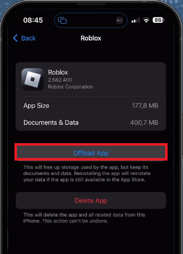 If your device is running low on storage, consider offloading unused apps or deleting unneeded files such as old movies. Subsequently, locate Roblox in your storage settings and tap on the "Offload App" option. This will clear the Roblox app cache and effectively restore the app as though it was freshly installed from the app store. Android users can perform a similar step by clearing the Roblox app cache from their system settings.