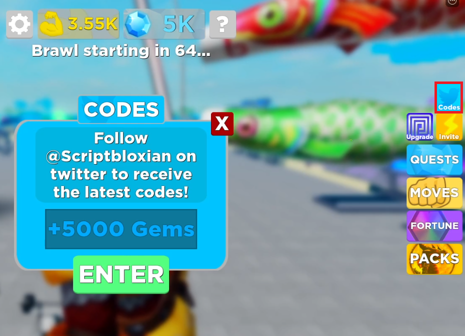 Open Muscle Legends on Roblox, click the Codes icon on your screen's right side, enter your code in the pop-up window, and tap 'Enter' to redeem your free rewards.