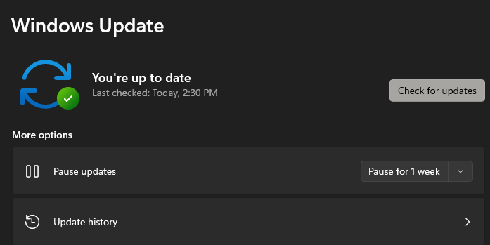 In the 'Windows Update' tab, select 'Check for Updates'.