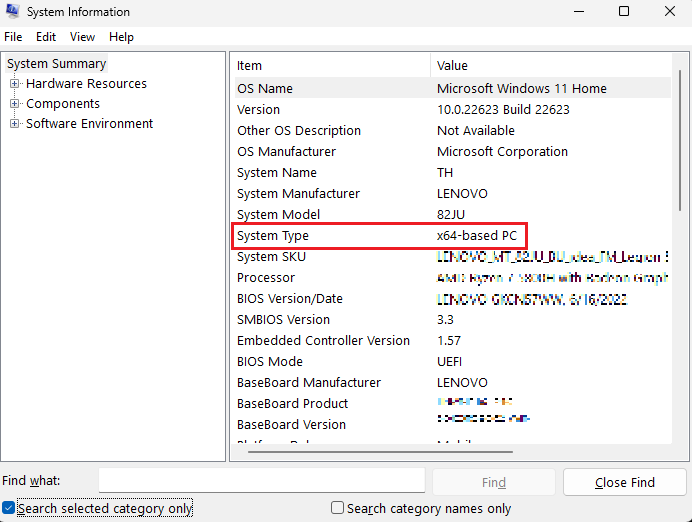 Open the 'System Information' Windows app, available through your start menu search. Under 'System Summary,' your system type will display as either x32-based or x64-based.
