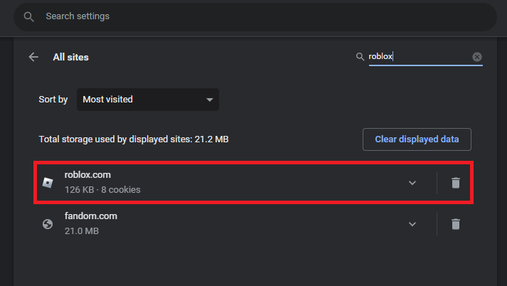 Clear the Roblox site data and cookies