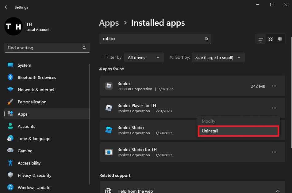 Uninstalling Roblox