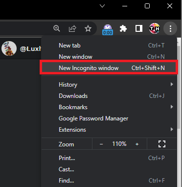 Chrome > New Incognito Window