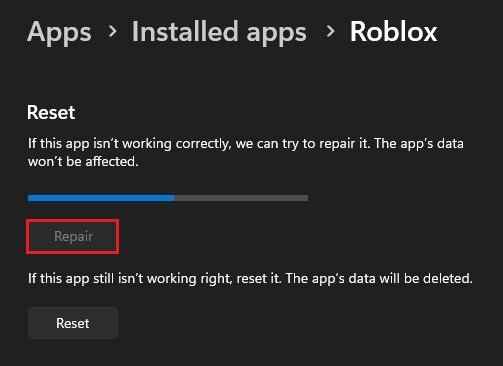 Click on the burger menu icon on the right and select Advanced options. Scroll down and click on Repair. This will take a few seconds to ensure that your Roblox files are complete and up to date.