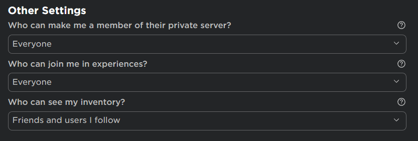 In your Other Settings, you can select who can invite this user to a private game or join them in their own experiences. You will be required to enter the parent pin to change these settings.