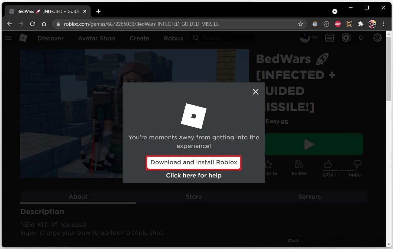 To reinstall the Roblox Player app, navigate to Roblox.com on your favorite browser and select play a game. You will then be prompted to re-download the application, which will take a minute to install on your system.