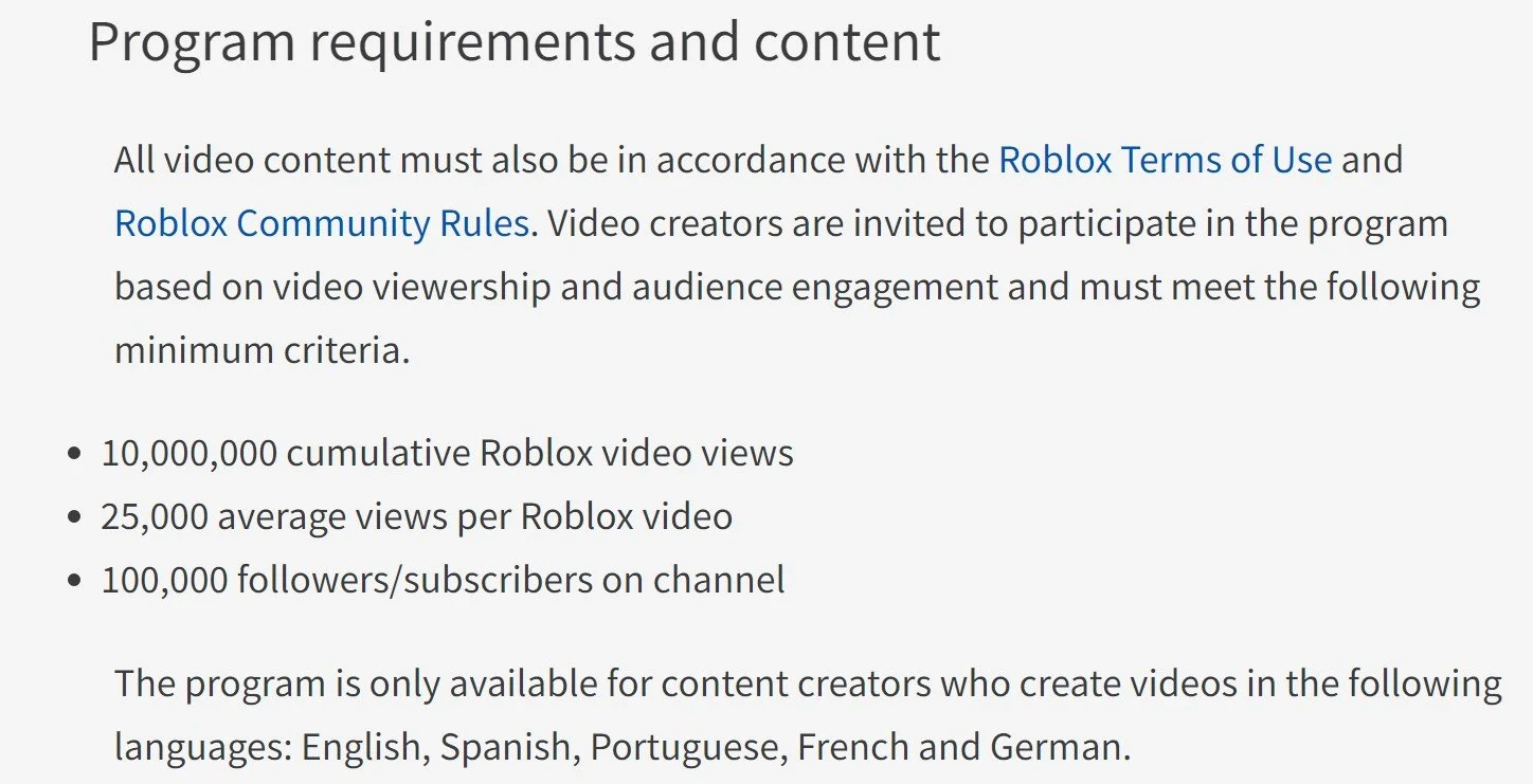 Roblox Video Star program requirements