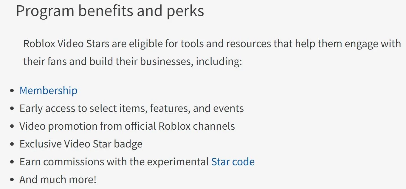 Roblox Video Stars program benefits
