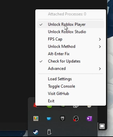 System Tray Access: Find the FPS Unlocker icon in your system tray. Right-click to access a menu with settings.