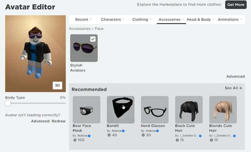 You can easily customize your Roblox avatar by using the Avatar Editor. Once you've logged into your Roblox account, head to the "Avatar" tab, select "Accessories" and choose "Face." Here you can try on various face accessories and layer them for a unique look.