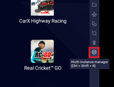 In your BlueStacks menu on the right side, click on the Multi-Instance Manager icon. A new window will open up.
