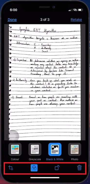 Automatic Capture: The iPhone's camera is designed to automatically detect and capture the document when it is properly aligned. This feature is perfect for quick scans without the need to adjust settings.