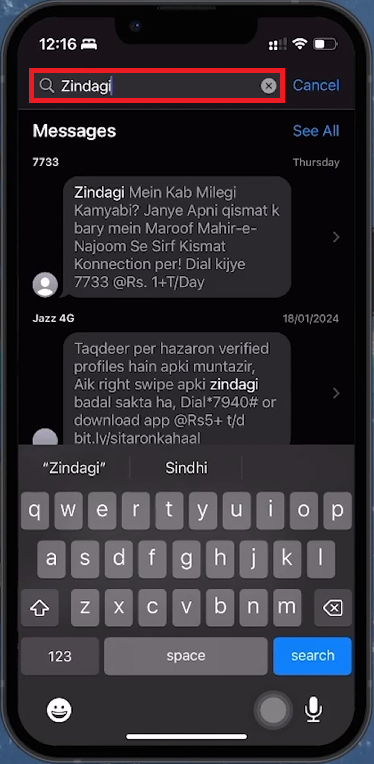 Initiate a Search: Open the Messages app, tap the search bar at the top, and enter the keywords.