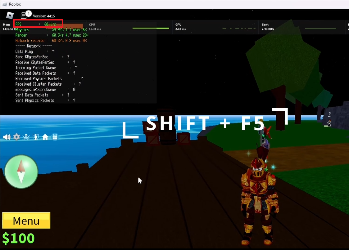 Simply start playing a Roblox game and press Shift + F5 on your keyboard. For some keyboards, you may need to use Shift + FN + F5.