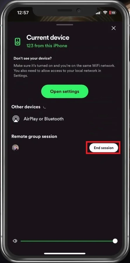 When going back to the devices list, you can see who joined your session, and you can also end the group session from here when tapping on End session.