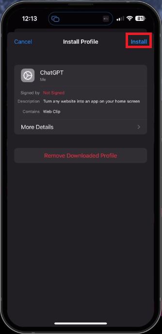 The downloaded profile will appear in your main settings. Install the profile, knowing you can uninstall it later if you decide not to use it.