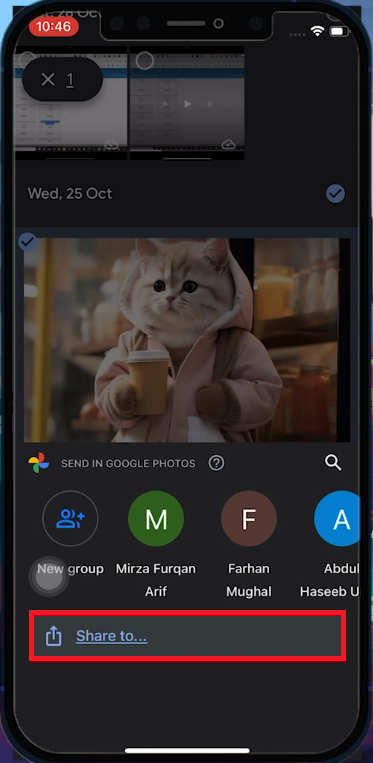 Select Photos > Share to …