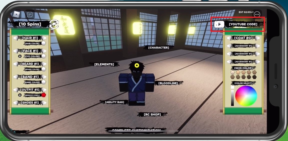 Next to the YouTube icon on the top right of your screen, you can enter codes for Shindo Life. After redeeming a code, you will be notified if the code is expired. If not, then the free item will be available in your inventory.