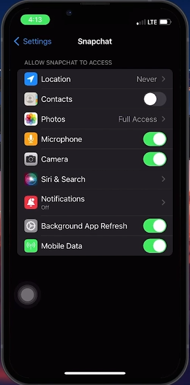 Ensure Snapchat has access to essential features like the camera and microphone.