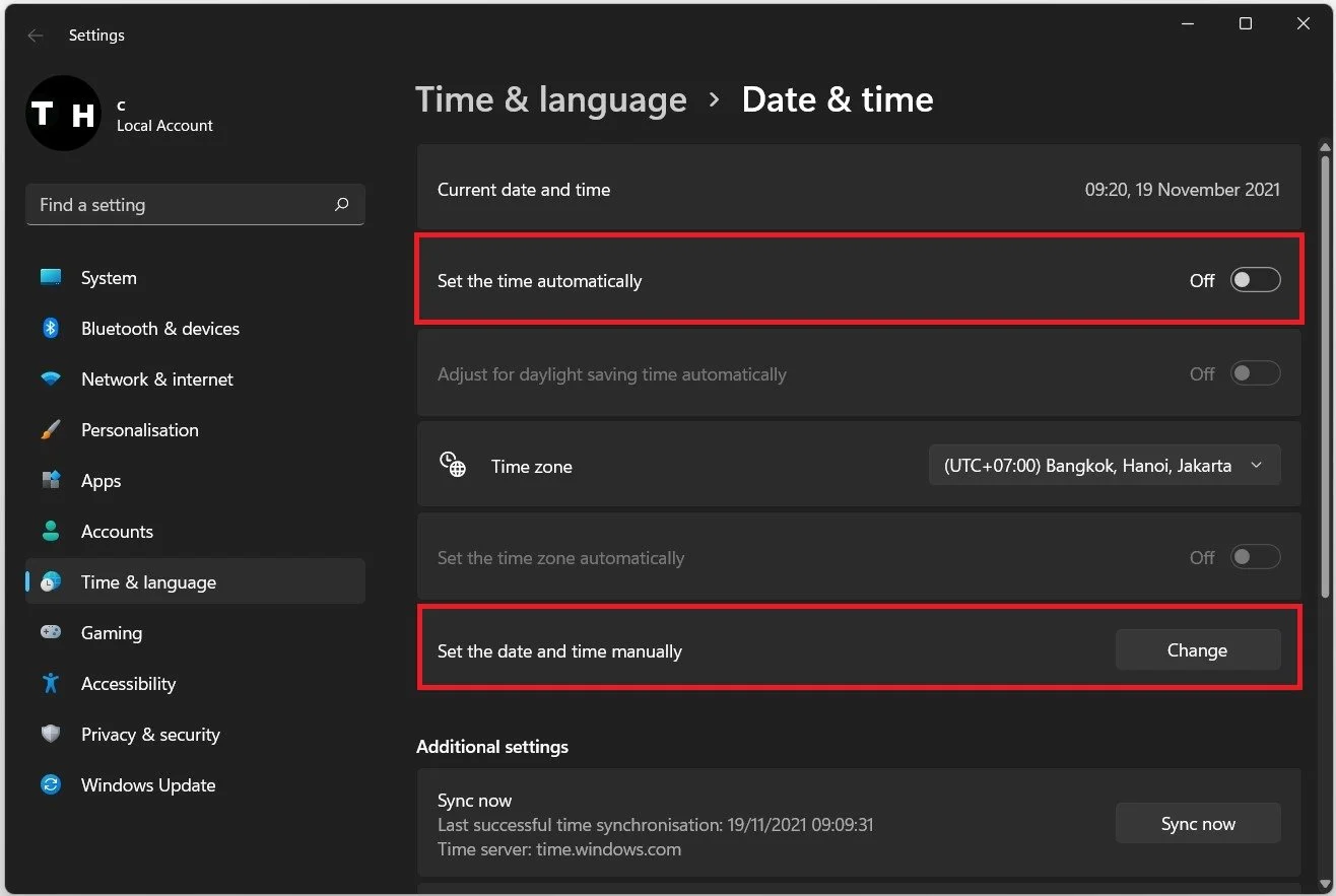 Manually changing your system time has resolved the snipping tool not working problem for many users. Right-click your date and time in your start menu and select Adjust time and date. Your settings window will open up, and here, disable the Set the time automatically option. Below, click on Change to Set the time and date automatically. Change your date and time, and then you can try to use your Snipping Tool.