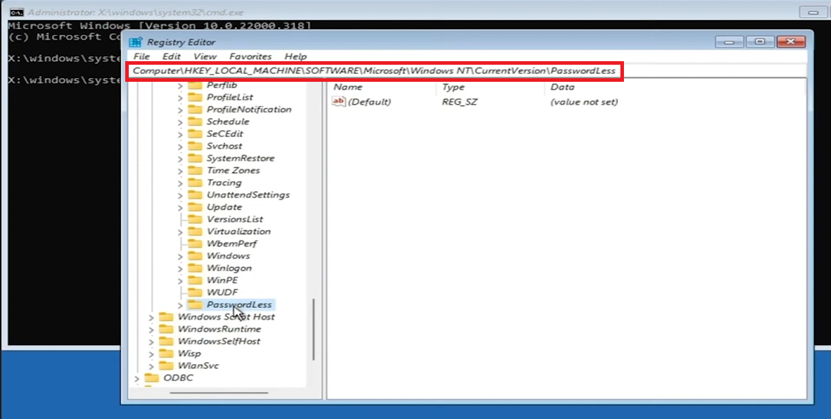 Navigate to Registry Path: Go to Computer\HKEY_LOCAL_MACHINE\SOFTWARE\Microsoft\Windows NT\CurrentVersion\PasswordLess\Device. You can copy and paste this path into the address bar for quick access.