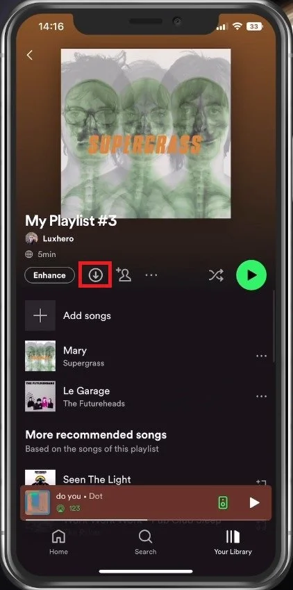 When selecting it, Spotify will proceed to download the songs and all future songs that will be added to this playlist. This will allow you to listen to Spotify music offline, even with a free account.