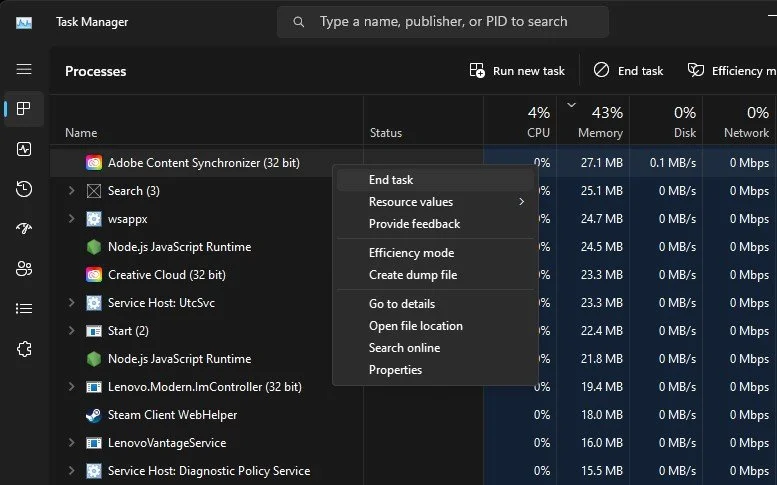 Close any programs on your PC that could interfere with Steam and its game installations. For example, CCleaner, any other game, such as Minecraft, Discord, or a different game launcher, such as the Epic Games launcher. In the Processes section of your Task Manager, right-click the process and select End Task. Make sure to only end the programs from running, which you know won’t break your operating system.
