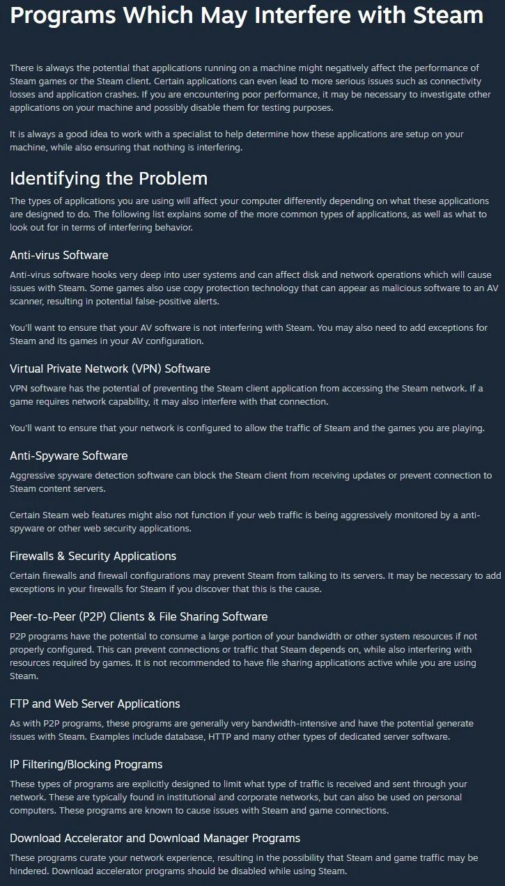 Preview this list with all of the programs and processes which may interfere with Steam and it’s games.