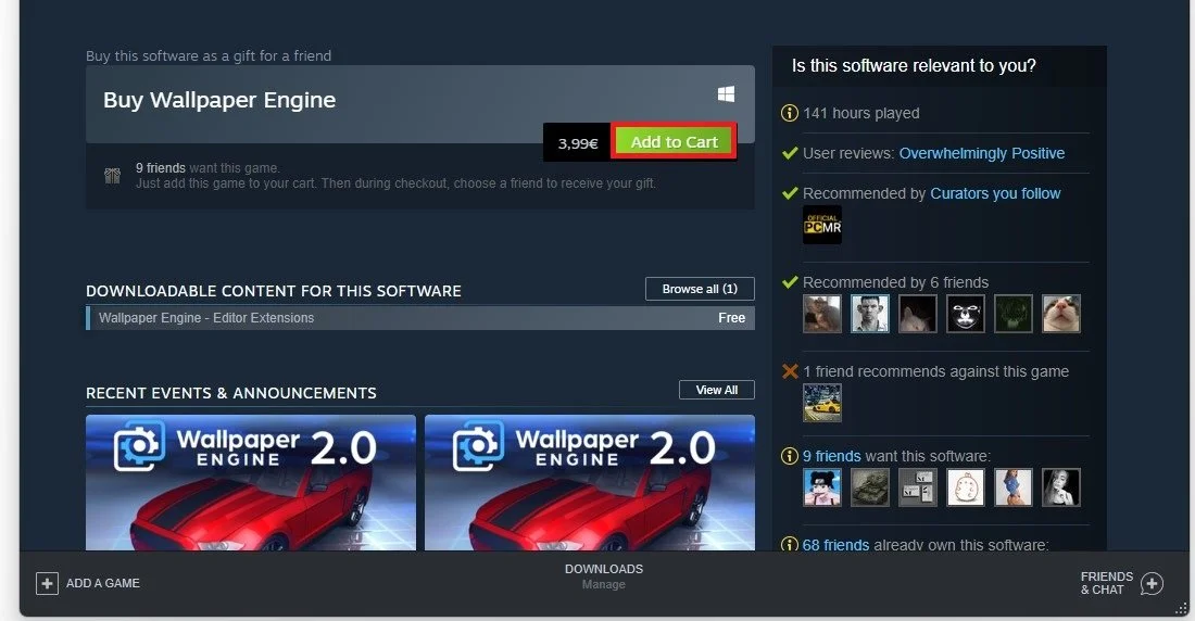 Open up your Steam client, or follow these steps using the browser version. Navigate to the game title you wish to gift a friend or user. Make sure that this user is on your friend list.