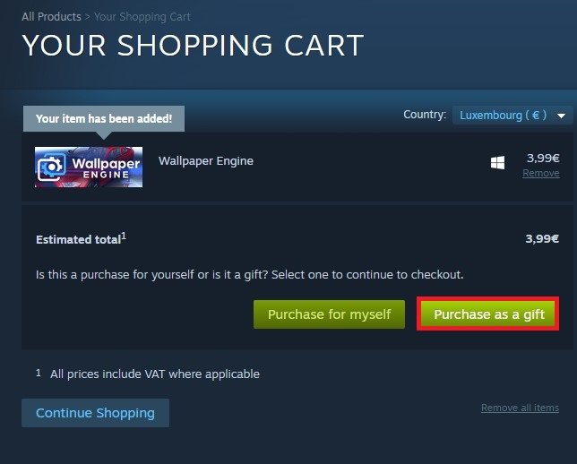 In your shopping cart, you can select to purchase the game for yourself or purchase it as a gift. Select Purchase as a gift.