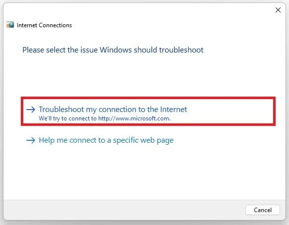 Click on Other Trouble-Shooters and here you have the option to run the Internet Connections troubleshooter. This will take a moment to find and resolve common issues with your network connection and will only take a minute to complete.